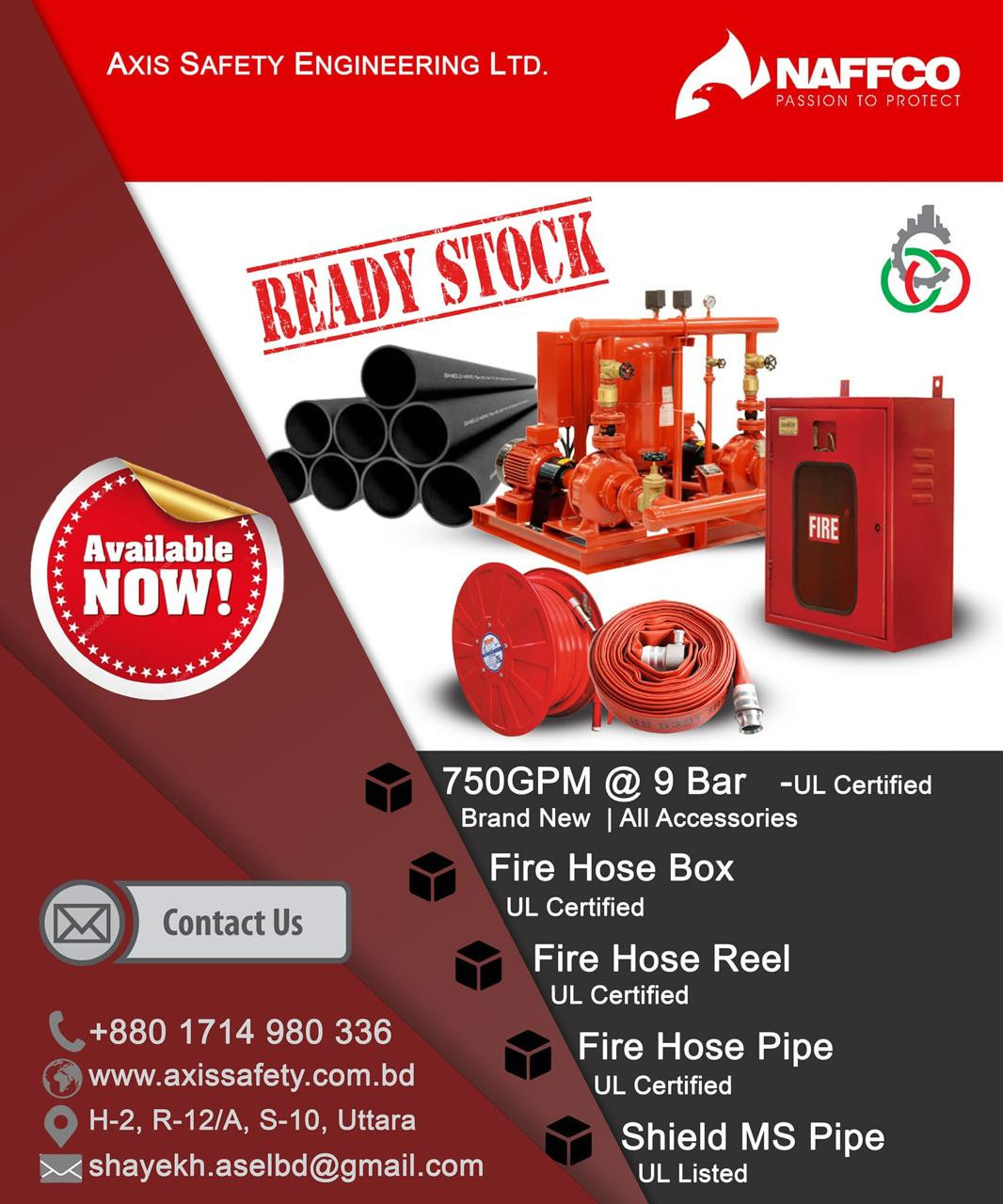 Axis Safety Engineering Ltd. is a trusted fire safety company in Bangladesh, operating in the electromechanical sector since 2013. The company delivers EPC services across fire protection, piping, fabrication, and green building works. Specialized divisions and global partnerships with NAFFCO, TYCO, BRISTOL, SHIELD, TRIGA, and ALFA support compliant system delivery across varied project types.